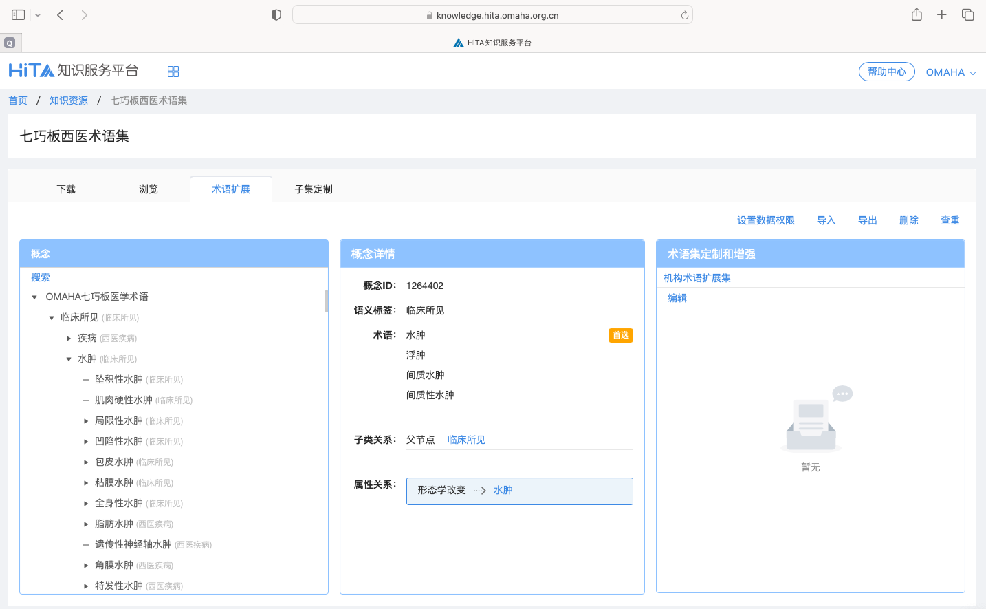 支持用户在七巧板术语集基础上进行术语扩展和子集定制,构建符合应用场景需求的扩展集,形成机构术语扩展集和七巧板医学术语集子集。